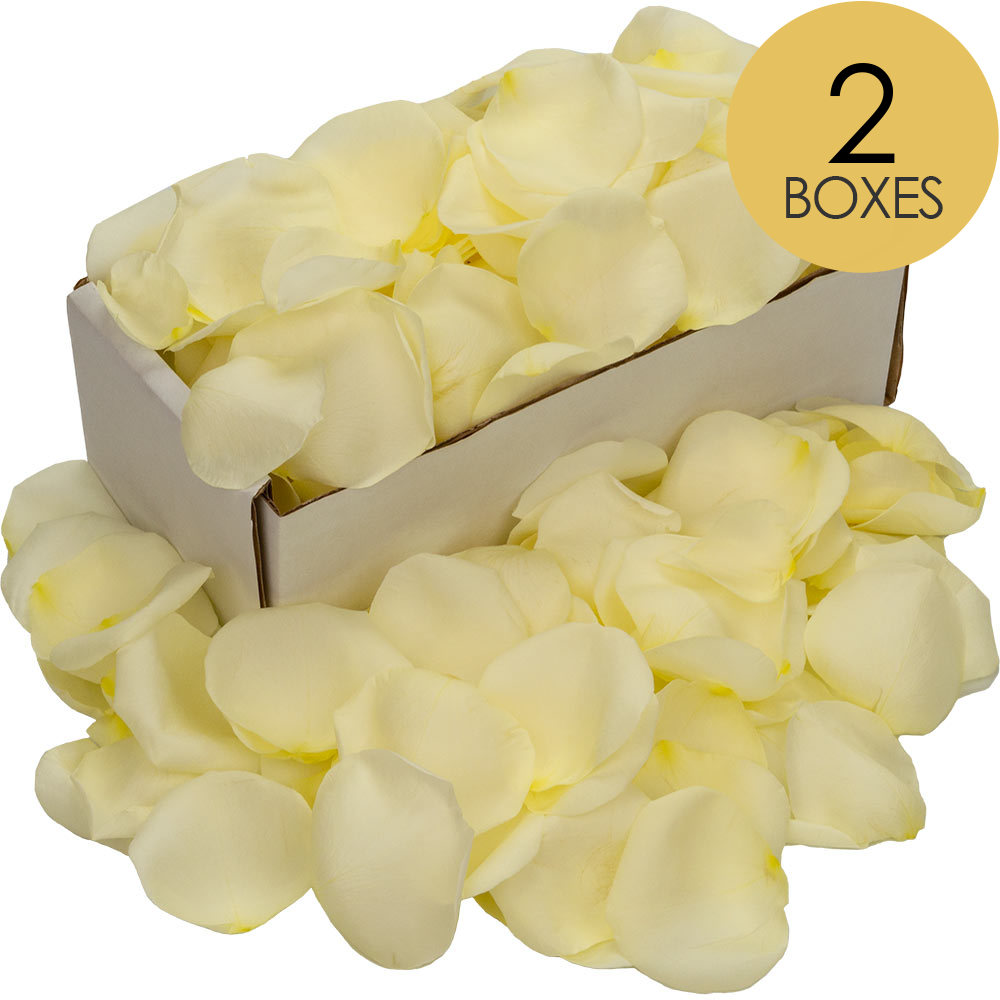 Our fresh rose petals are offered in quantities from 1-6 boxes. Each box fills up about 2.63 pint glasses. A box is made up of about 6-12 fresh roses depending on the variety and the size of rose.